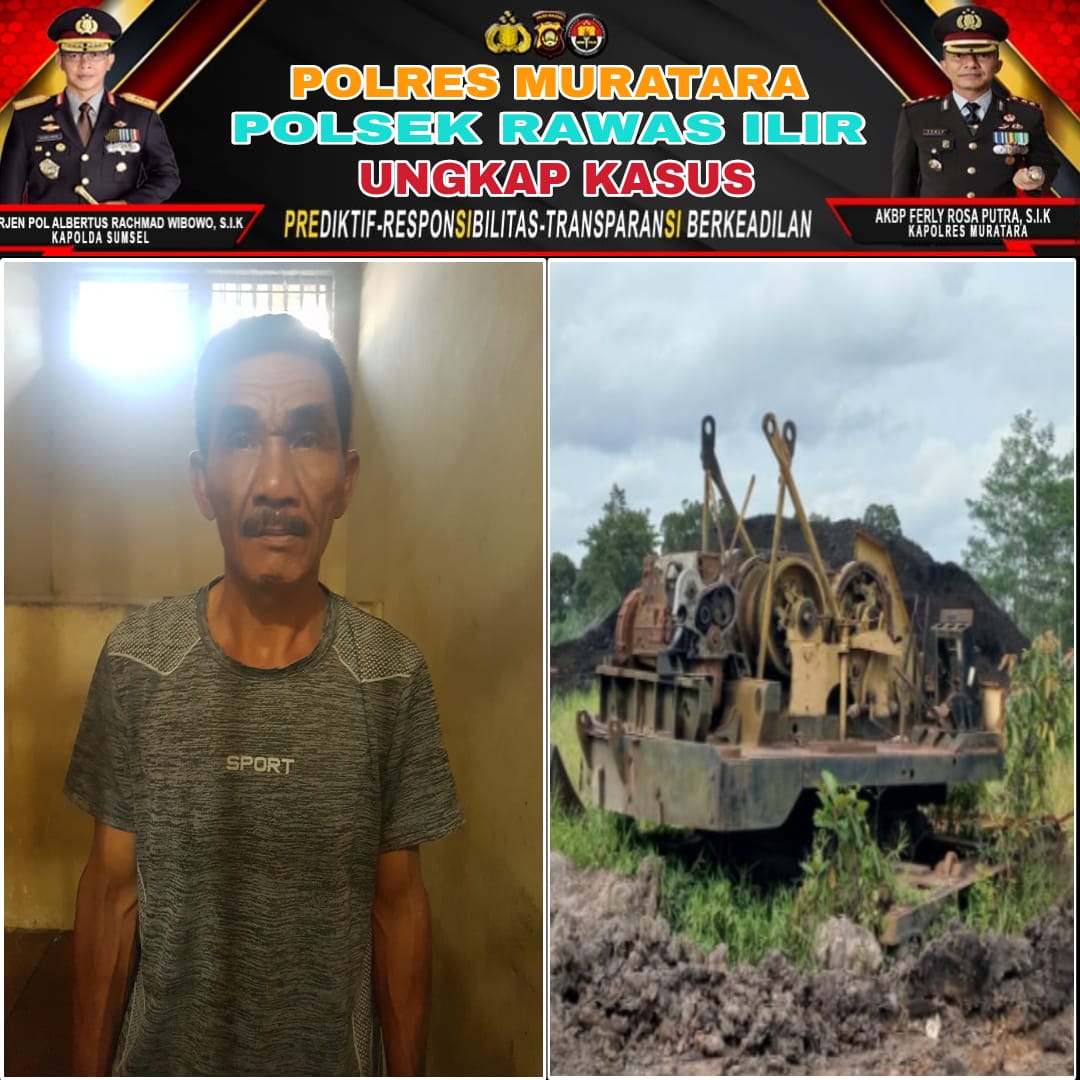 MWawasan, Muratara (SUMSEL)~ Diduga sedang santai didalam rumah, penadah besi crane PT Bara Sentosa Lestari (BSL), Teguh (58) warga Desa Batu Kucing, Kecamatan Rawas Ilir, Kabupaten Musi Rawas Utara digerebek petugas, Kamis (15/2/2023).